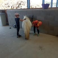 Le but de cet atelier est que l’enfant prenne du plaisir à être avec son poney/cheval, qu’il crée un lien avec ce dernier afin de pouvoir mobiliser ses potentiels.